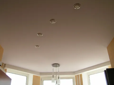 В помещениях с высокой влажностью, таких как кухня или ванная комната, устанавливаются натяжные потолки из материала с низкой гигроскопичностью и «дышащие», что обеспечивает максимальный срок использования изделия и отсутствие грибка.