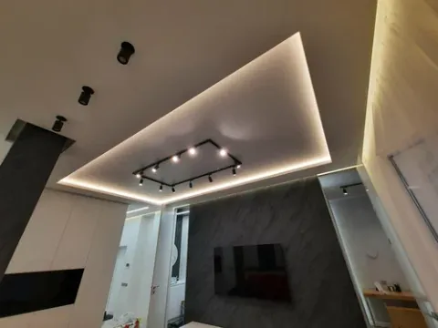 ПОТОЛОК С ТРЕКОВЫМ ОСВЕЩЕНИЕМ В КУХНЕ